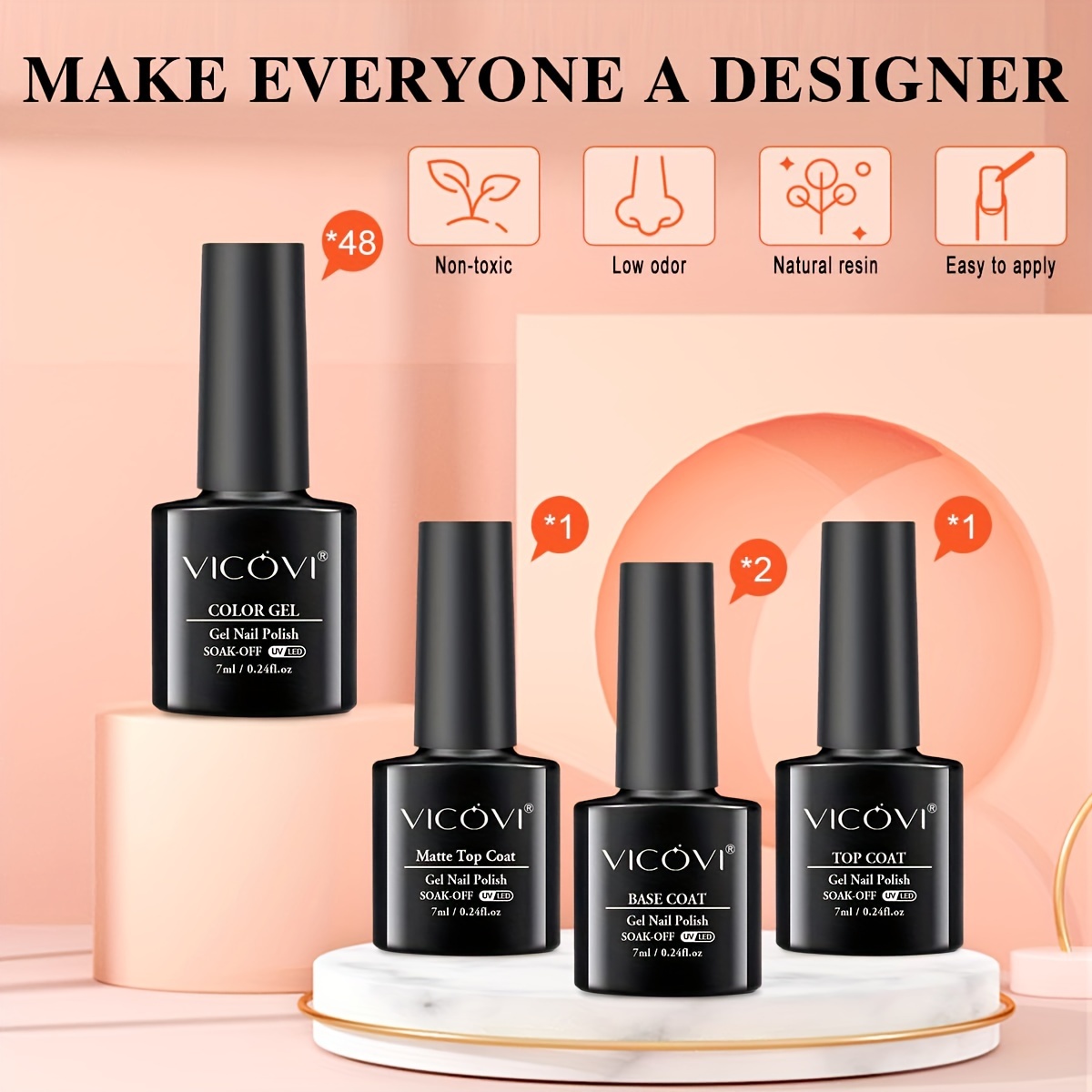 48 Colors Gel Polish Set with 36W Nail Light Curing Lamp – Lead-Free, Unscented, Soak-Off Base Coat & Top Coat – DIY Gel Nail Kit for Beginners at Home with Manicure Tools – vicovi Gel Nail Set
