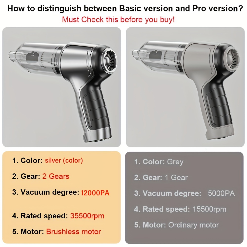 Portable Cordless Handheld Vacuum Cleaner, Rechargeable, 12000Pa Brushless Motor Cyclone Suction, Car Vacuum Cleaner, Suction And Blow, Rechargeable Powerful Caru002FOfficeu002FHome Vacuum Cleaner